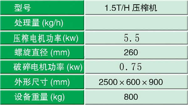雙螺旋破碎壓榨機(jī)主要技術(shù)參數(shù):